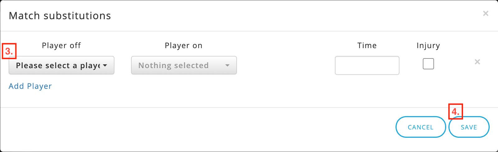 Please note: If a player is not in the dropdown list, make sure they are registered on MYSAFA and selected in the lineup.