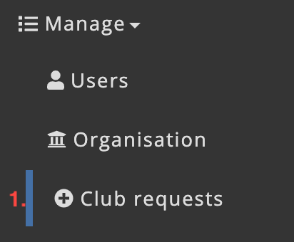 2. On the club requests page, click request club insert. You can view all requests and outcomes for your organisation on the club requests page.